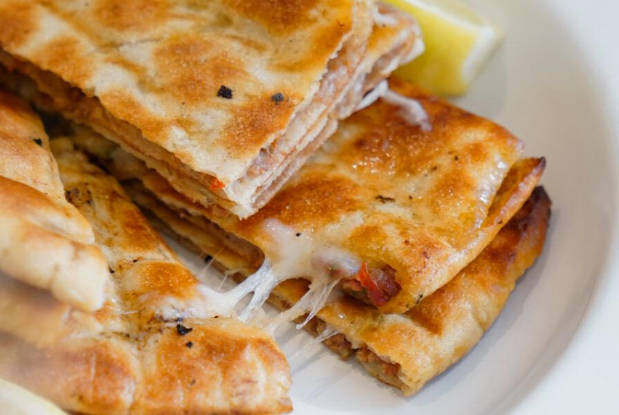 Arayes bread pockets stuffed with seasoned meat kofta filling with cheese, grilled until crispy