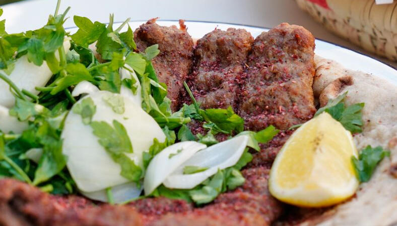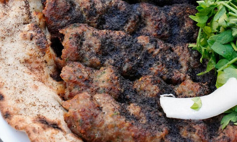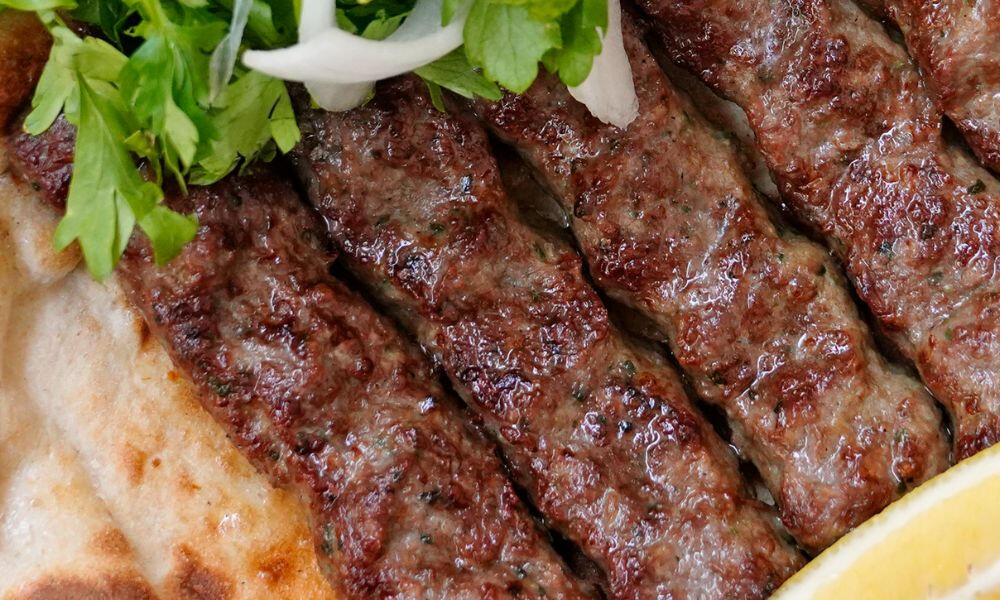 كباب لحم على الطريقه العراقيه مع رشة السماق يقدم مع الخبز