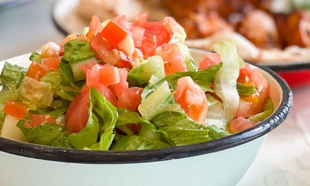 سلطة خضراء بسيطة مكونة من الطماطم والخس ومتبلة بزيت الزيتون والخل