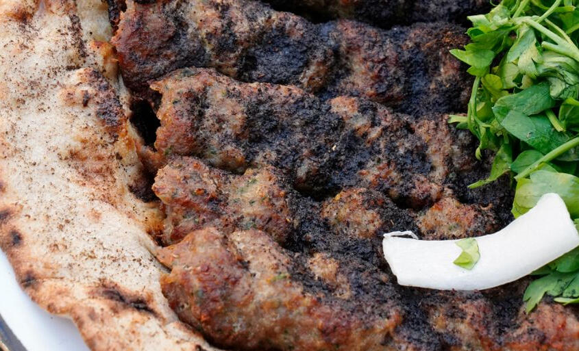 كباب لحم على الطريقه العراقيه مع رشة السماق يقدم مع الخبز