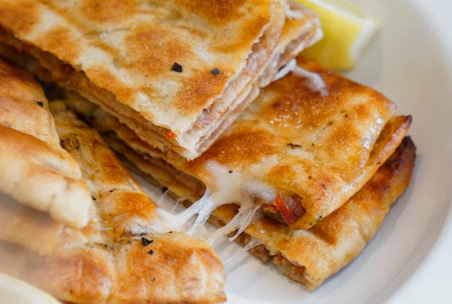 Arayes bread pockets stuffed with seasoned meat kofta filling with cheese, grilled until crispy